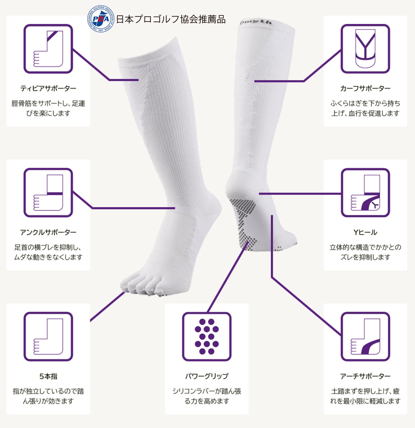 あらゆるスポーツにおいて、アスリートのポテンシャルを支える足。その点を重視して開発されたのがD-mythの高機能ソックスです。最大パワーを引き出し、疲れを最小限に。その優れた機能性を、全てのゴルファーに
